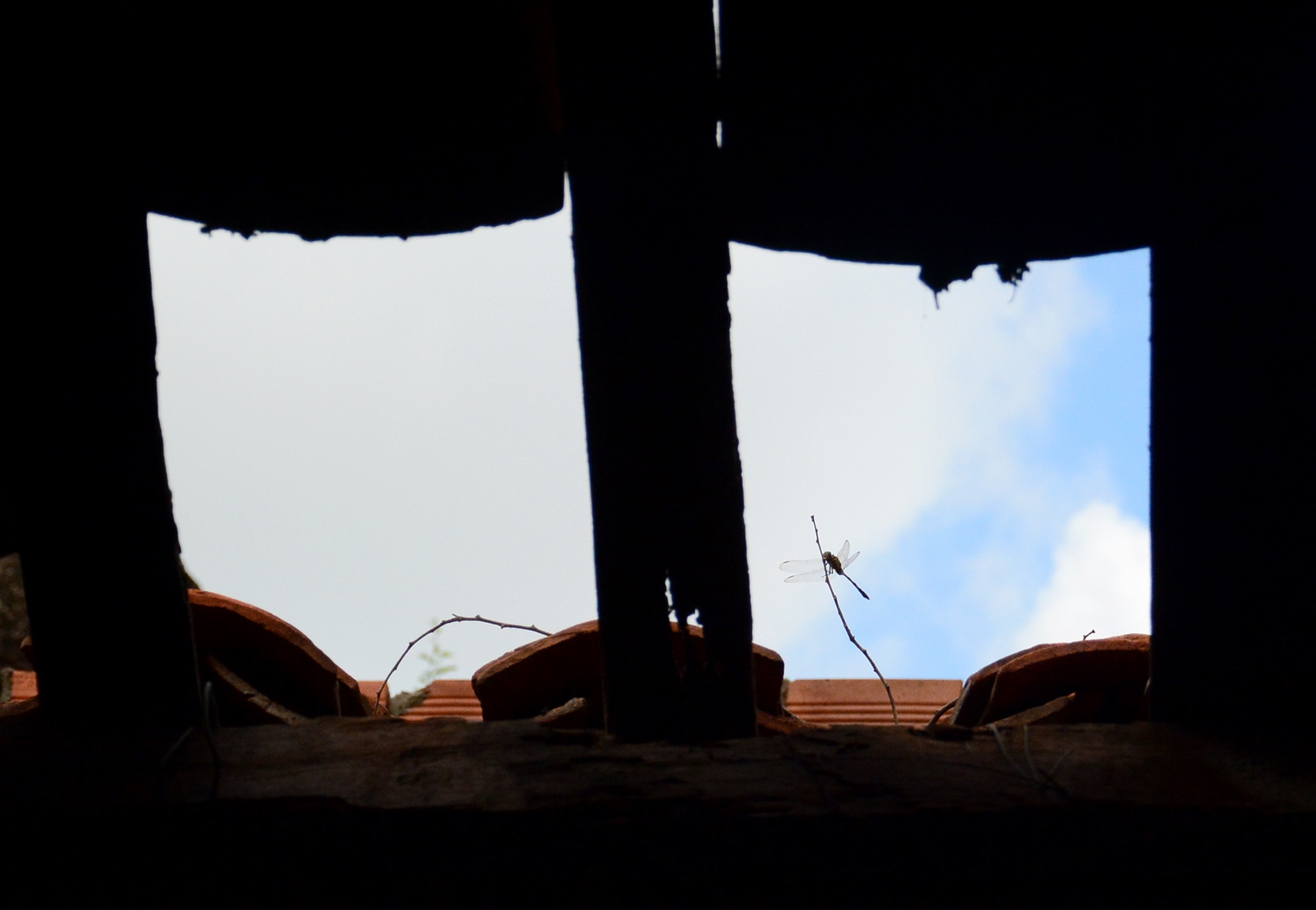 | Từ trong nhà hội sở nhìn lên, mái nhà có nhiều nơi bị lộ thiên không còn khả năng che mưa, nắng. |