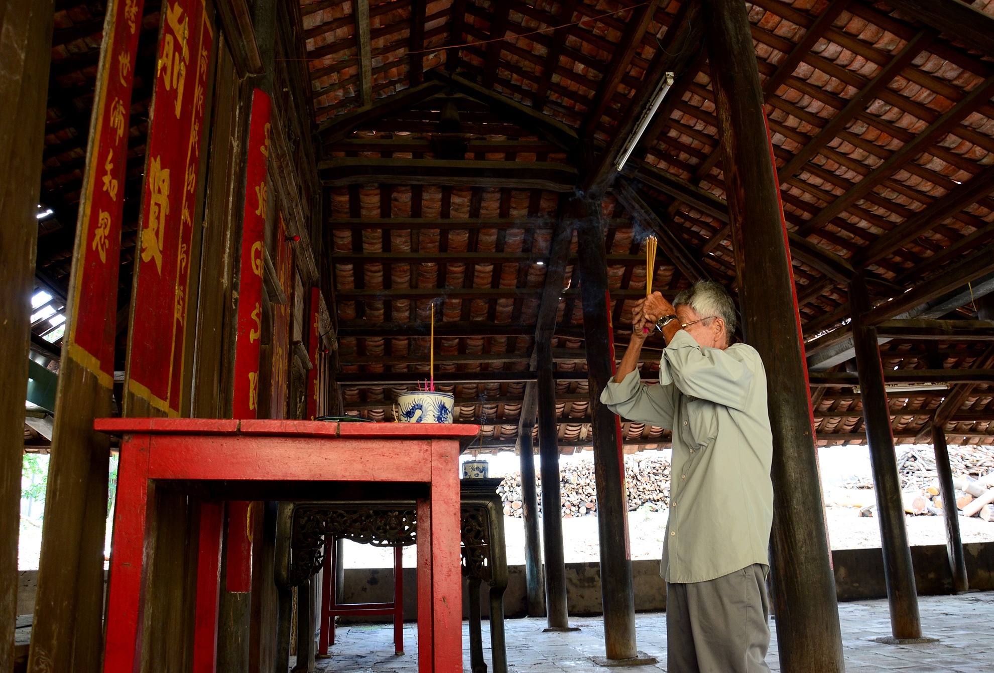 "Đã bị hư hại nghiêm trọng, lại nằm bên đường, mỗi khi xe lớn chạy qua, các kết cấu rung lắc, ngói đùn xuống. Những khi mưa gió chúng tôi không dám vào thắp hương bởi nó có thể đổ sập bất cứ lúc nào", ông Tý lo ngại.