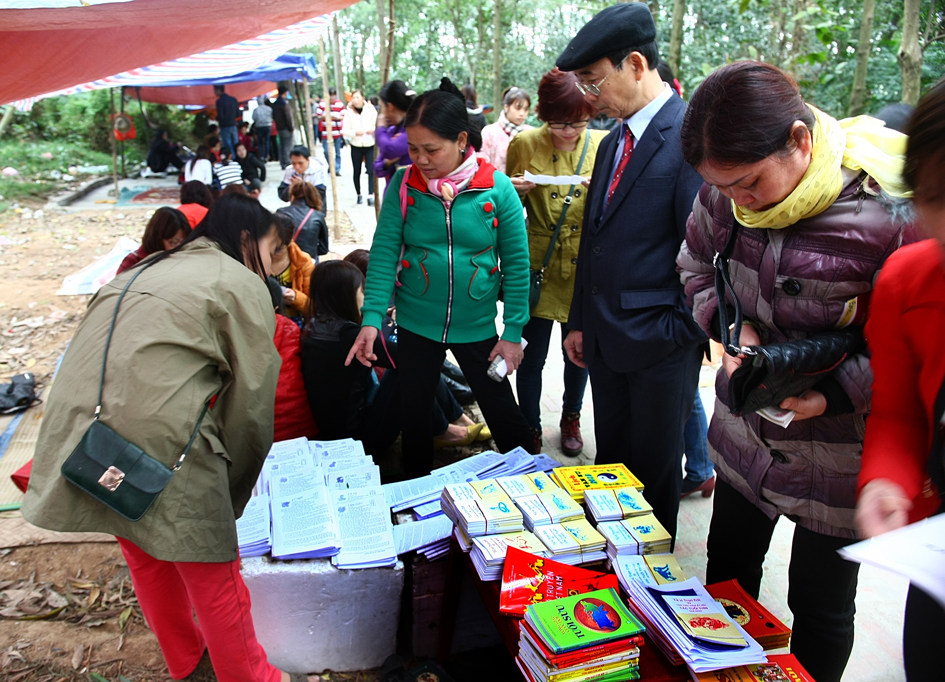 | Nhiều sạp bán sách tử vi, tướng số in ấn sơ sài, không có thông tin nhà xuất bản. |