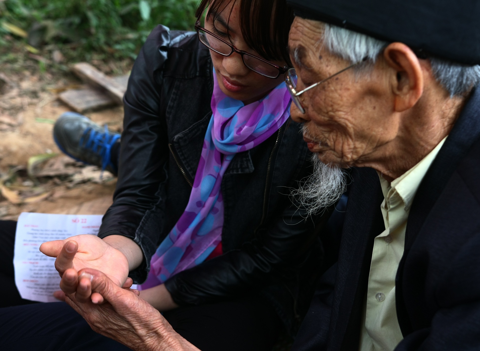 | Một 'thầy' đang phán tính cách, số phận và tương lai cho một cô gái. |
