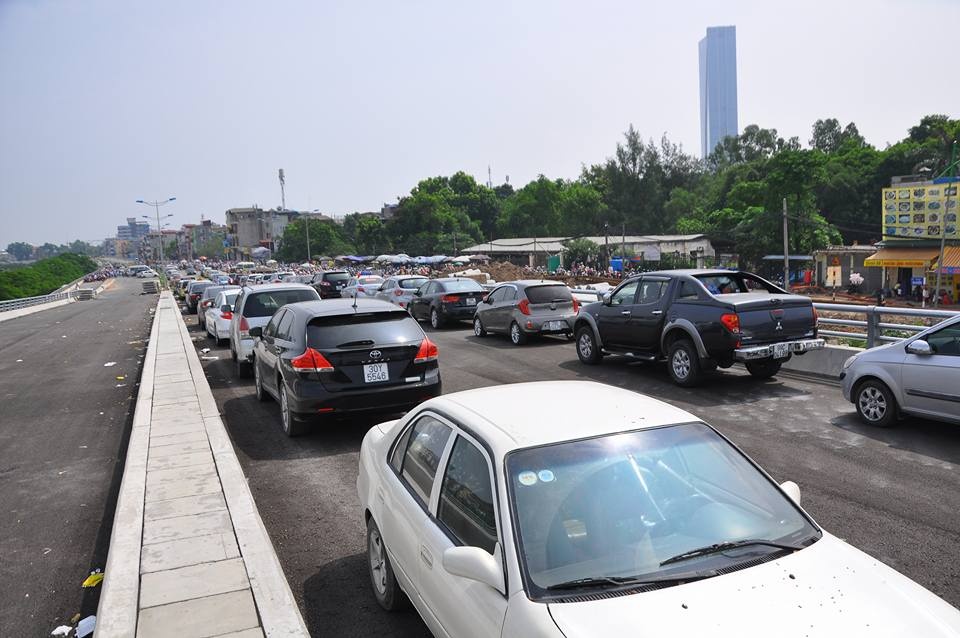 | Đoạn đường trên cao qua Bưởi chưa thông xe cũng được tận dụng làm bãi trông ôtô. |