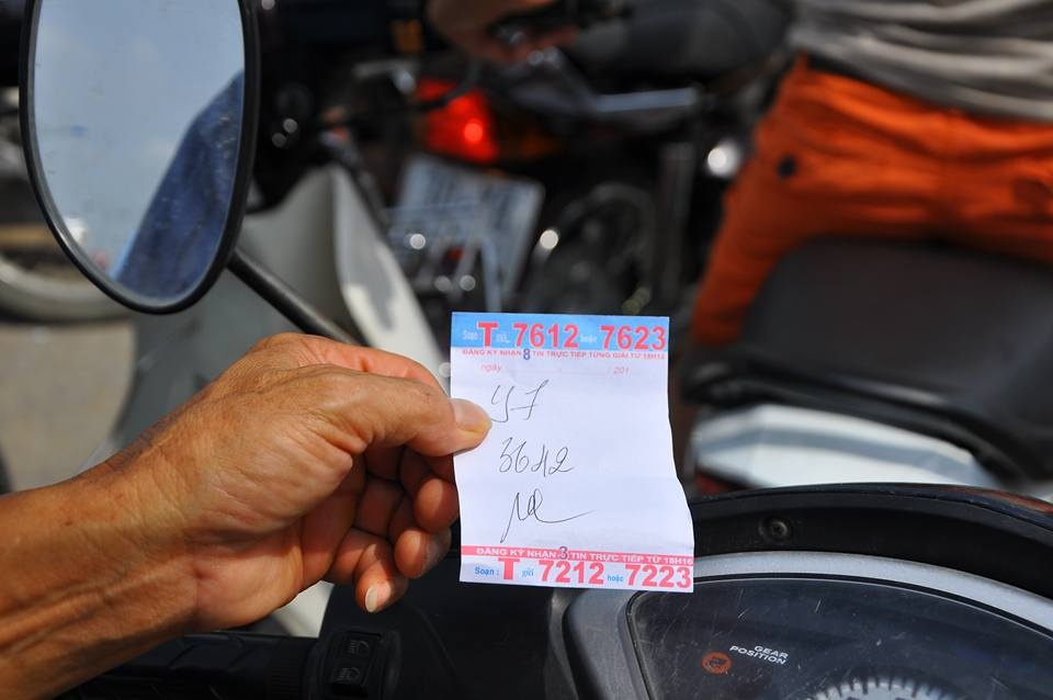 Anh Trọng Trinh (38 tuổi, quê Bắc Ninh) cho biết, 6h30 anh gửi xe ở bãi đầu phố Kim Mã, bị thu 20.000 đồng, trong khi trên vé chỉ ghi giá 1.000 đồng. "Tới bãi xe Thủ Lệ, nhân viên ghi vé vào tờ giấy quảng cáo nhắn tin lô đề rồi đòi thu 10.000 đồng. Tôi chỉ vào tấm biển hỏi sao thu cao gấp 3 lần thì họ bảo, nghỉ lễ nên thu thêm", anh chia sẻ.