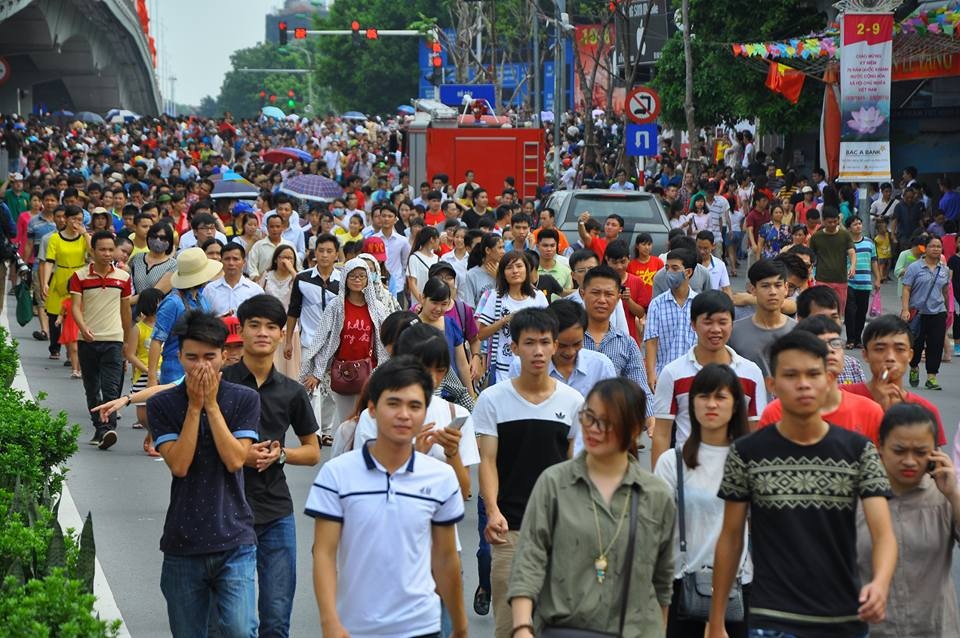 | Dòng người đổ về các tuyến phố lân cận sau khi kết thúc lễ diễu binh trên phố Kim Mã. |