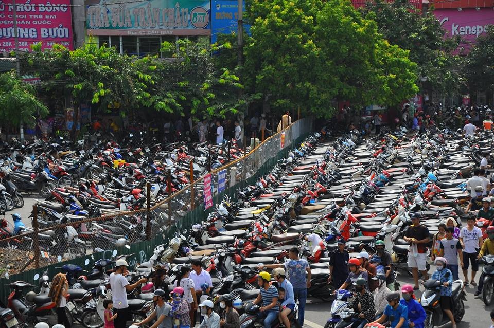 Tuy nhiên, những người trông xe đã thu cao gấp 3-7 lần, lên 10.000 - 20.000 đồng một xe máy, tùy vị trí.
