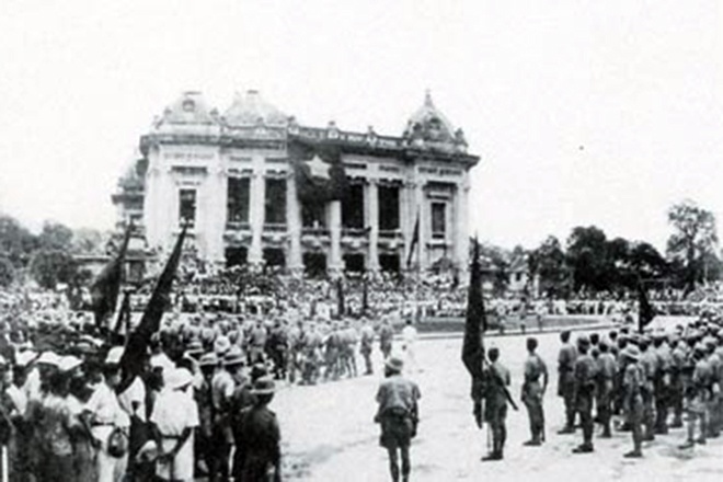 | Ngày 19/8, cuộc mít tinh lớn do Việt Minh tổ chức tại Quảng trường Nhà hát lớn đã kết thúc bằng cuộc tuần hành thị uy của quần chúng phối hợp với lực lượng vũ trang chiếm đóng các sở, cơ quan đầu não của chính quyền bù nhìn. |