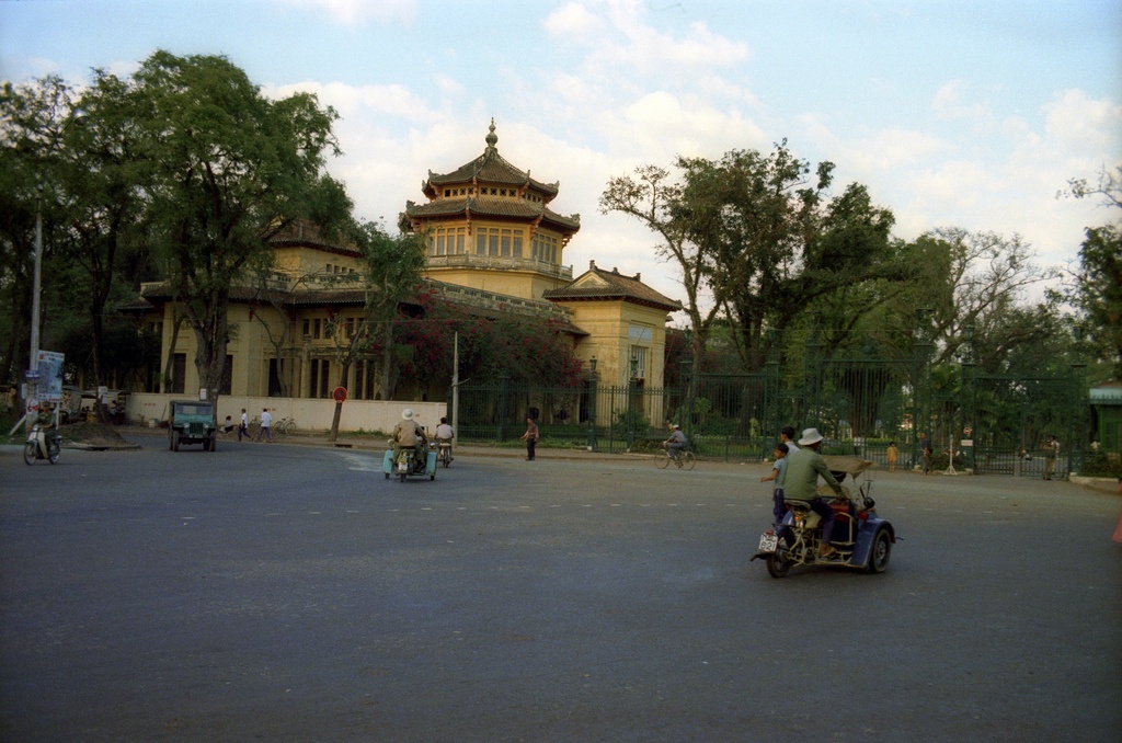 | Một góc Bến xe hỏa xa ngày xưa phía trước công viên Diên Hồng. Tòa nhà bên phải nay là Công ty Vận tải đường sắt Việt Nam. |