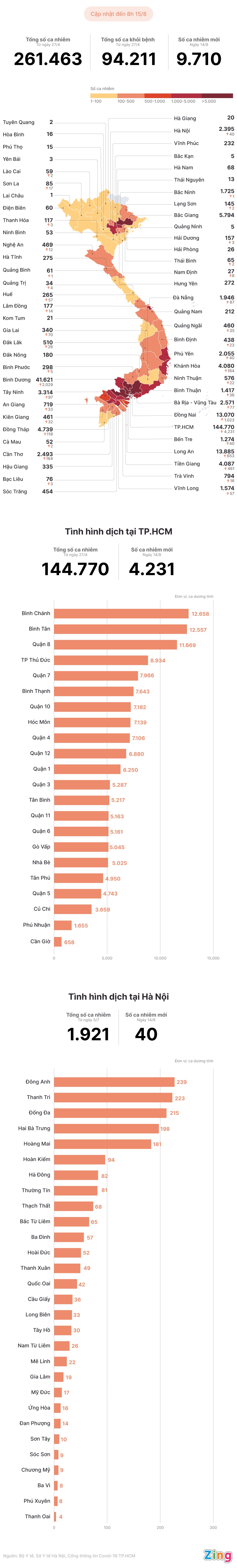 Tính từ 27/4 đến nay, Việt Nam có 261.463 ca mắc Covid-19. Đặc biệt, dịch tại TP.HCM và Hà Nội vẫn diễn biến phức tạp.