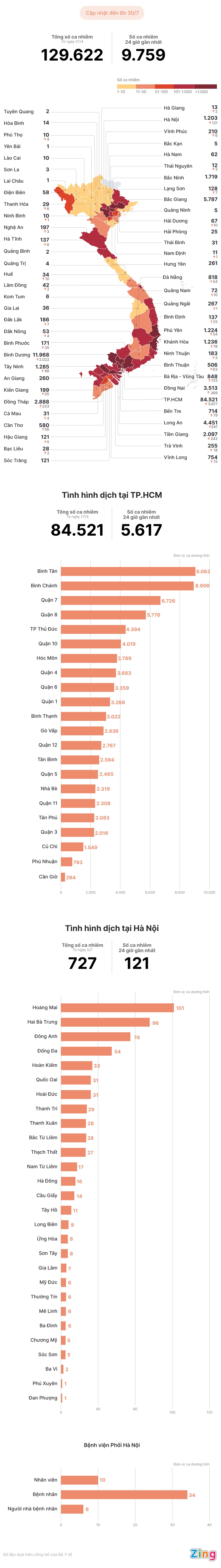 Tính từ 27/4 đến nay, Việt Nam có 129.622 ca mắc Covid-19. Đặc biệt, Hà Nội đã phát hiện 727 bệnh nhân sau hơn 3 tuần bùng phát trở lại.