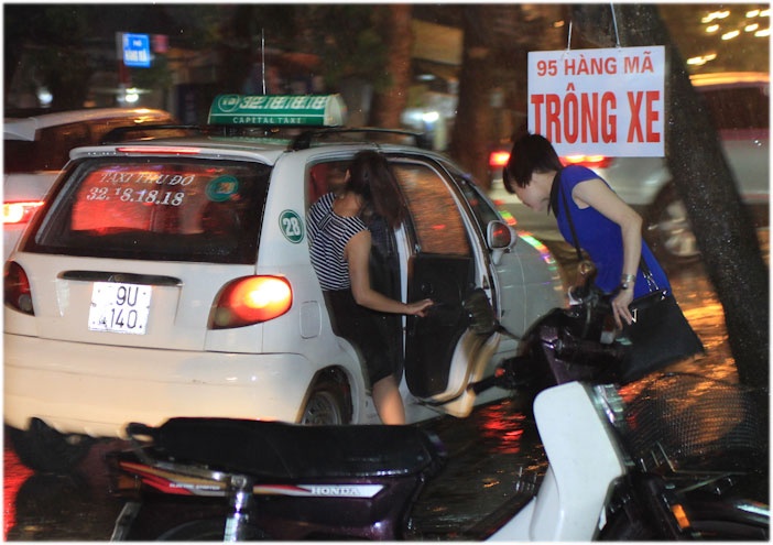 | Trời mưa bất thường khiến dịch vụ taxi cũng đắt khách hơn. Ảnh: Ngọc Lan. |