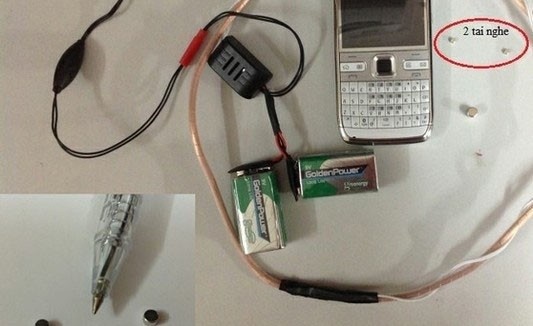Trước đó, ngày 30/6 (một ngày trước kỳ thi THPT quốc gia), chúng tôi gọi đến những số điện thoại trên, vẫn được mời chào nhiệt tình, với giá dịch vụ tăng lên 500.000 đồng/ngày (bình thường 400.000 đồng/ngày). Đó là bộ sản phẩm gồm hai tai nghe không dây, chỉ nhỏ bằng đầu bút bi, 2 cục pin 9V, micro siêu nhỏ và một bộ phát sóng truyền tín hiệu.
