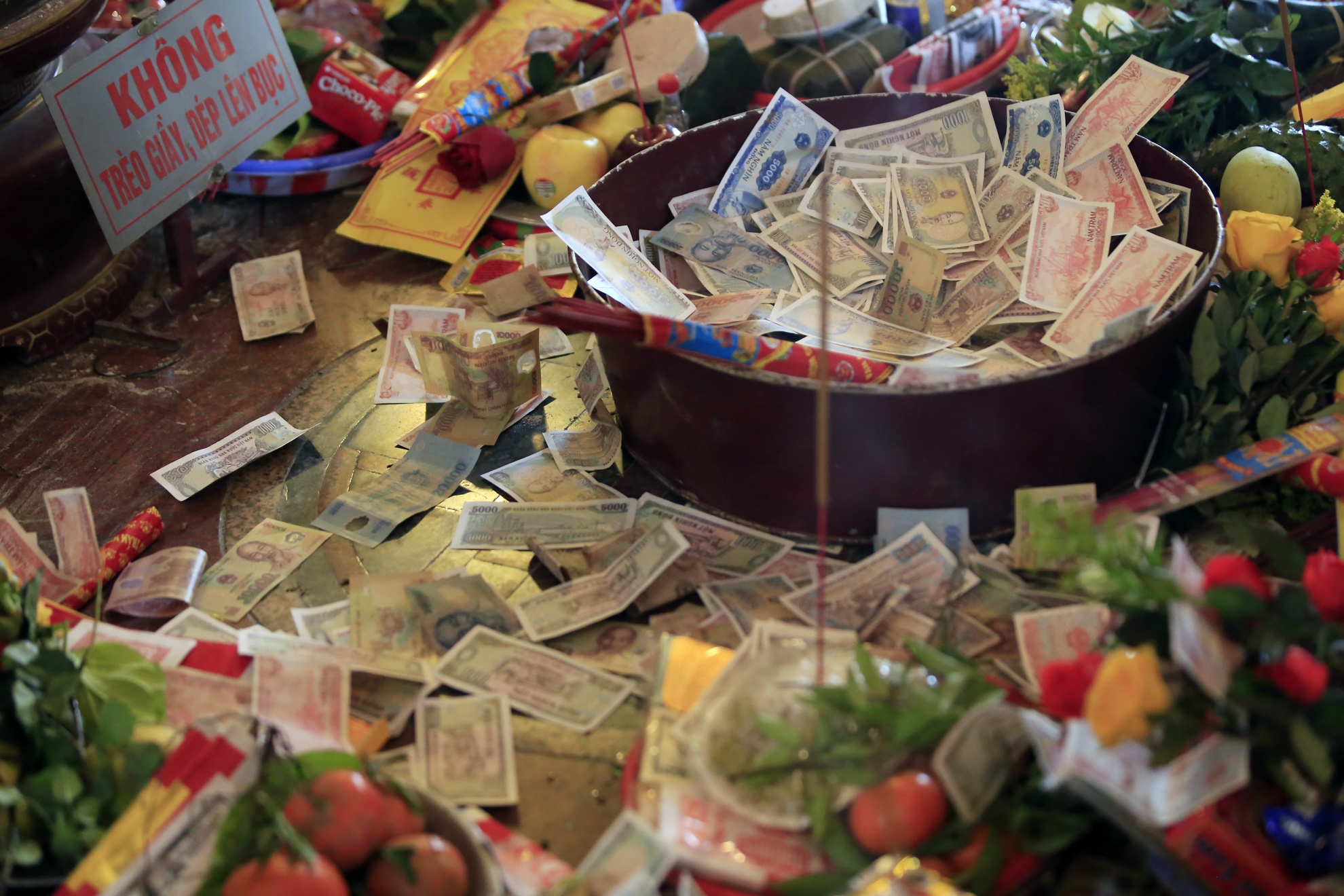 | Tiền để ngay trên mặt bàn, hoặc kín đáo hơn là xếp lẫn vào các mặt hàng khác như tiền âm phủ, đồ lễ... |