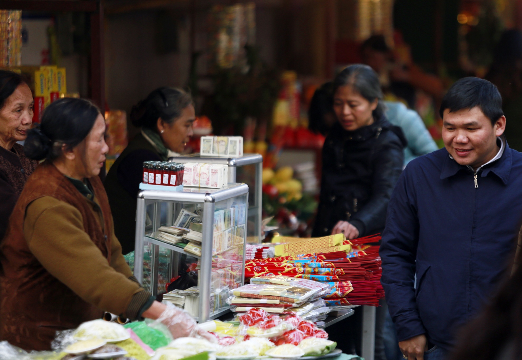 | Thói quen "rải tiền" lẻ của những người đến lễ chùa cũng là yếu tố giúp cho dịch vụ đổi tiền lẻ hoạt động mạnh. |