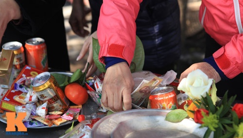 | Nhiều người dân vẫn tin tưởng việc rải tiền lẻ khi đi lễ đền, chùa sẽ được gặp may mắn. |