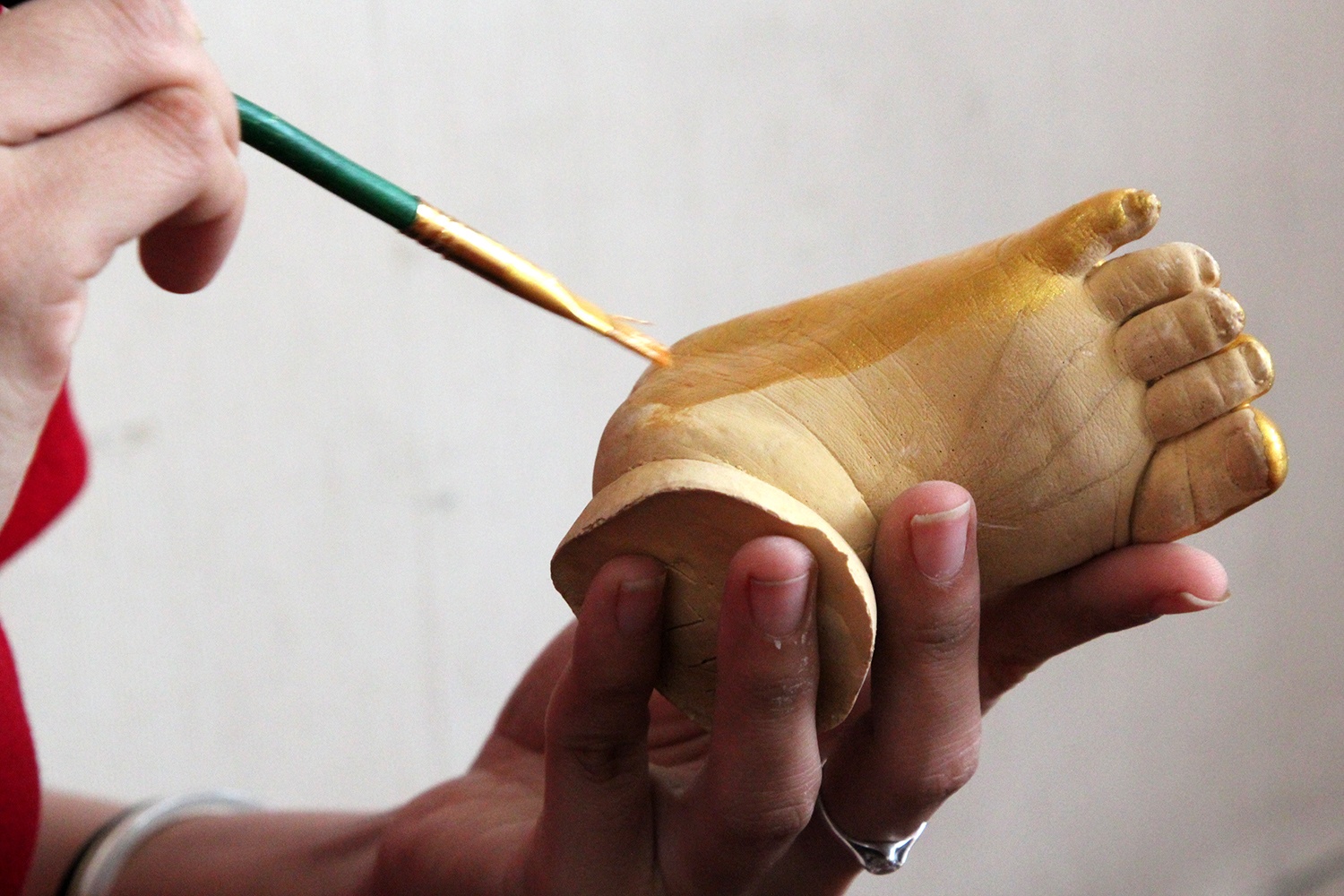 | Sau khi rời khuôn đúc, tượng có hình hài như thật với đầy đủ các chi tiết nhỏ nhất như dấu vân tay, vân chân sẽ được sơn màu theo yêu cầu của khách hàng. Màu sắc được chọn thường là vàng hoặc trắng. |