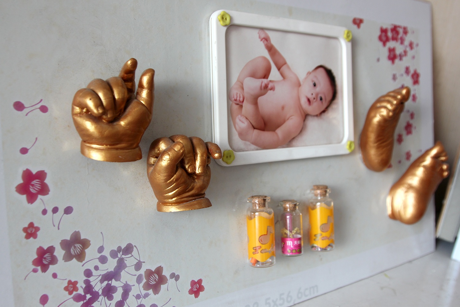 | Nhiều gia đình quyết định đúc khuôn tượng tay, chân cả nhà để làm kỷ niệm. Những khuôn tượng sau khi đúc còn được trang trí trong một khung tranh lồng kính. Giá của một sản phẩm này dao động 300.000 đồng cho đến hơn 2 triệu đồng. |