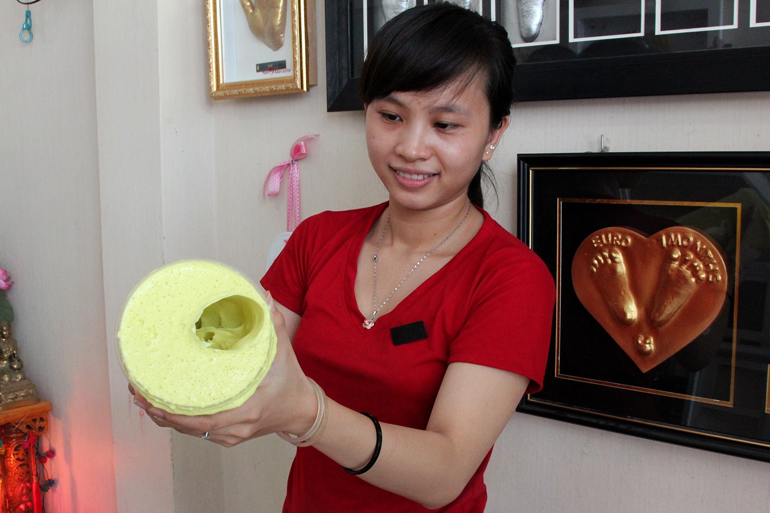 | Một công ty ở Tân Bình, TP.HCM đã đưa dịch vụ đúc khuôn các bộ phận trên cơ thể người về Việt Nam. Dịch vụ độc, lạ có xuất xứ nước ngoài này đã thu hút không ít phụ huynh đến để đúc khuôn các bộ phận trên cơ thể con mình làm khung tranh treo kỷ niệm. |