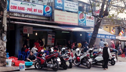 Bên cạnh giá trông giữ xe bị chặt chém thì các cửa hàng bán đồ ăn cũng thi nhau “chém ngọt” khách. Giá bún riêu trên phố Nguyễn Khuyến ngày thường 25.000 đồng/bát nay tăng lên 40.000 đồng/bát. Giá miến trộn trên phố Bà Triệu tăng từ 30.000 lên 50.000 đồng/bát. Hàng quán nào càng gần điểm vui chơi, thăm quan, chùa chiền nổi tiếng thì càng tăng giá mạnh.