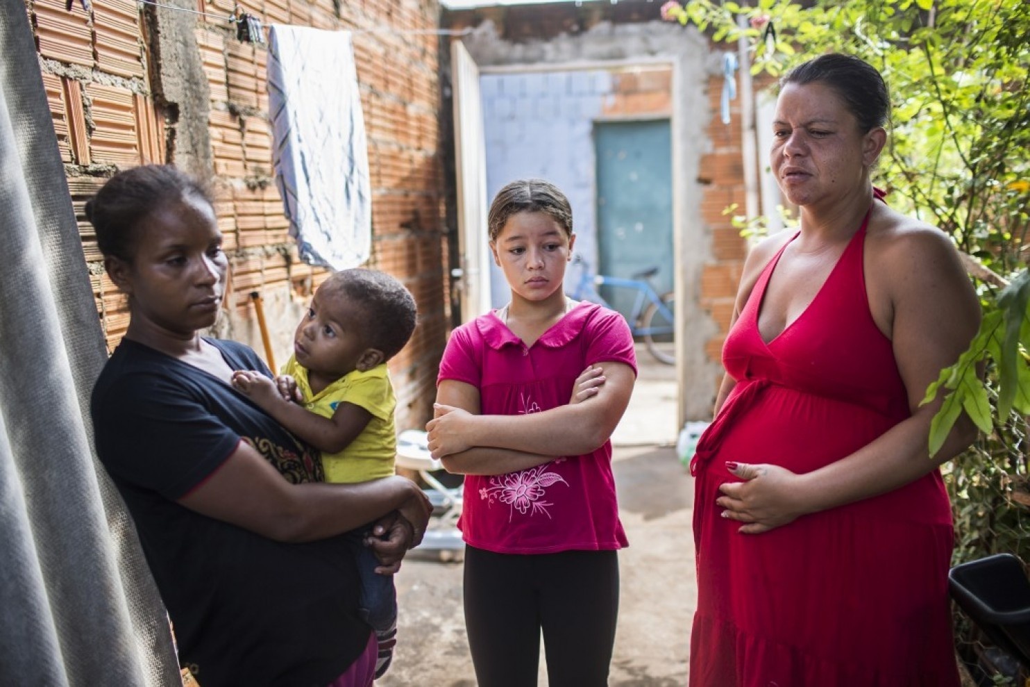(Từ trái qua phải) Priscila Pereira bế cậu con trai một tuổi, Lara Vitoria de Gomes và mẹ Leticia Lima Pedro, người đang mang thai 7 tháng. Như nhiều gia đình nghèo khác ở Jardim Jandaia, họ thậm chí không thể mua thuốc chống muỗi. Ảnh: Washington Post |