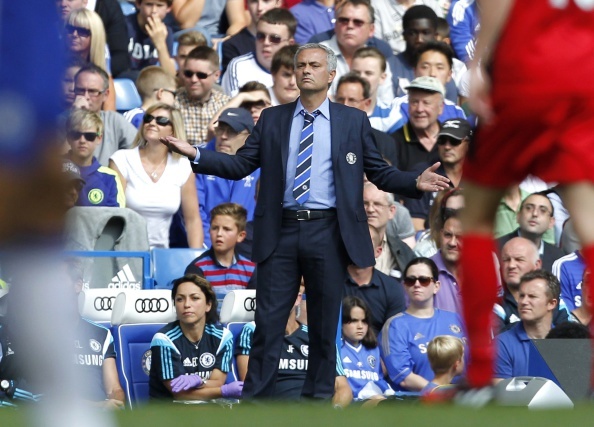 | Trước khi Diego Costa mở tỷ số, HLV Mourinho đứng ngồi không yên trên băng ghế chỉ đạo. |