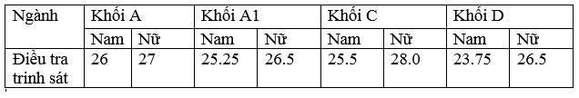 Ngành thấp nhất của khối trường công an là Ngôn ngữ Anh, Nam (phía Bắc) khối D, Ngôn ngữ Trung khối D của Học viện Cảnh sát Nhân dân: 15 điểm (bằng ngưỡng xét tuyển đầu vào theo quy định của Bộ GD&ĐT).