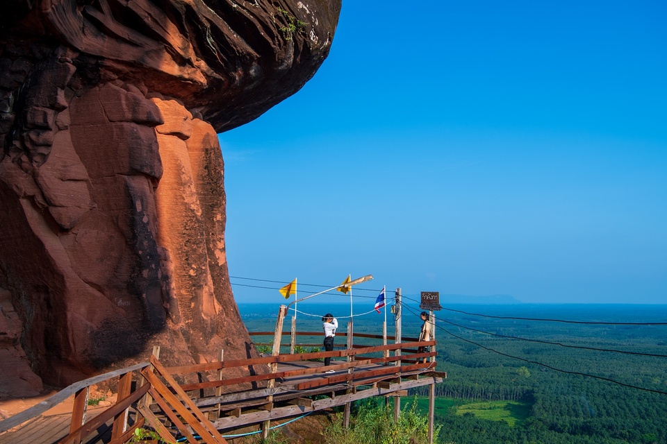 Nơi đây nổi bật với Wat Phu Tok - ngôi chùa cheo leo trên núi đá, nơi du khách phải men theo những lối đi gỗ vòng quanh vách núi để lên đỉnh, vừa thót tim vừa choáng ngợp trước khung cảnh rừng núi trải dài.