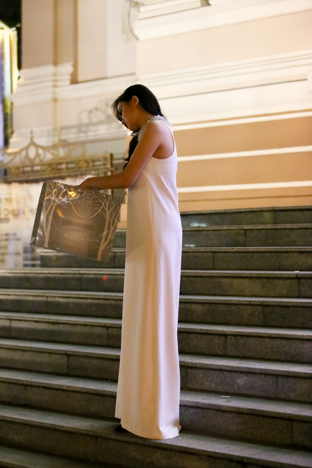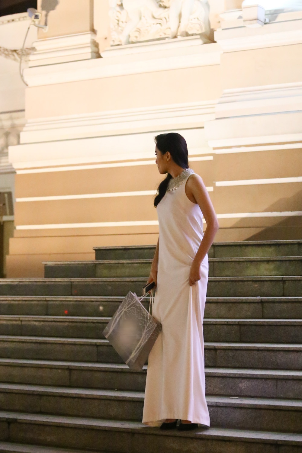 Diễm Hương được nhà thiết kế Adrian Anh Tuấn tháp tùng lên thảm đỏ của sự kiện. Chiếc váy mềm mại với phần đính kết cầu kỳ mà cô khoác lên mình cũng do nhà thiết kế này thực hiện. Ở đời thường, bộ đôi cũng là những người bạn thân.