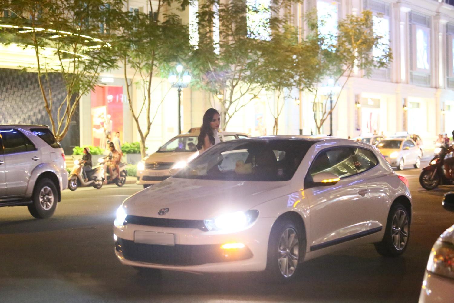 Người đẹp được bạn trai đưa đón bằng chiếc xe khá sang trọng.