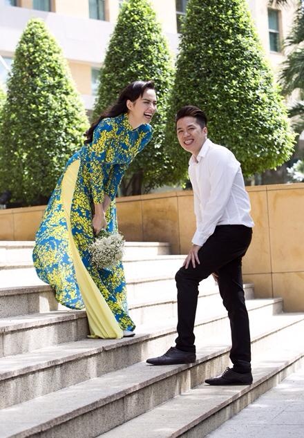 | Cách đây hai tháng, Diễm Hương cùng bạn trai Quang Huy thực hiện bộ ảnh cưới tại trung tâm TP.HCM. Người đẹp diện trang phục họa tiết áo dài nữ tính. Bạn trai hoa hậu mặc trang phục đơn giản với sơ-mi trắng và quần âu. |