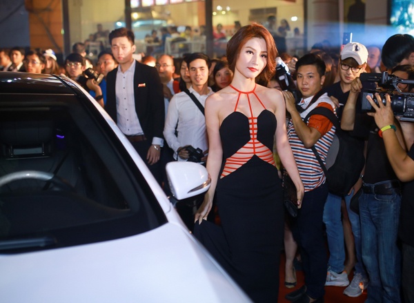 | Diễm My trong buổi ra mắt phim Tốc độ và đường cong tại TP.HCM, ngày 22/12 mà không có bạn trai hộ tống. |