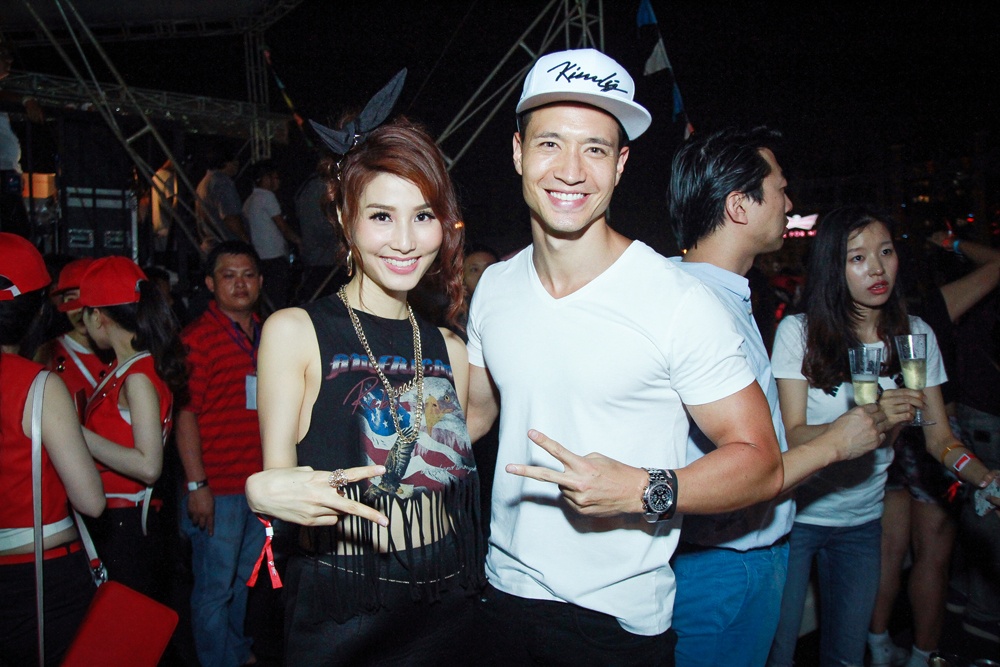 Người đẹp hội ngộ nam diễn viên Kim Lý tại sự kiện. Thời gian vướng nghi vấn rạn nứt tình cảm với Trương Ngọc Ánh, Tùng Hero của Hương Ga thường đi sự kiện một mình. Trong một bài phỏng vấn, anh khẳng định mối quan hệ của họ vẫn tốt đẹp.