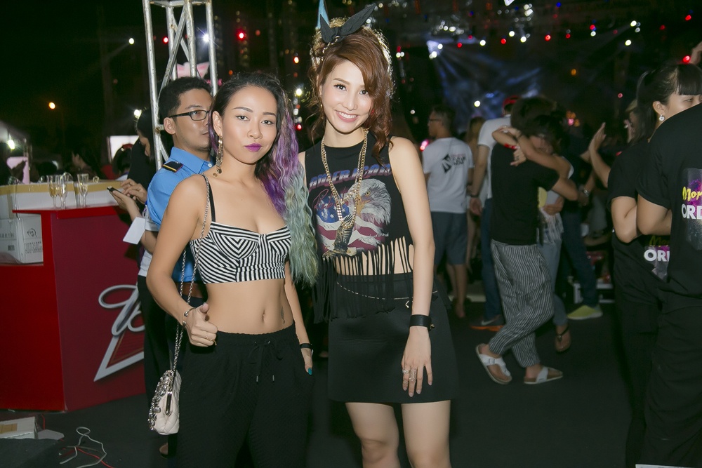 | Bạn gái Cường Seven - chân dài MLee diện trang phục cá tính, khỏe khoắn khi đến buổi tiệc đêm. |