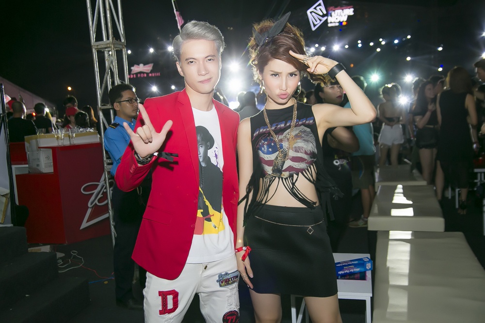 Thành viên nhóm 365 - ca sĩ ST cũng góp mặt với tư cách khách mời. Anh chọn trang phục nổi bật hòa vào không khí âm nhạc sôi động.