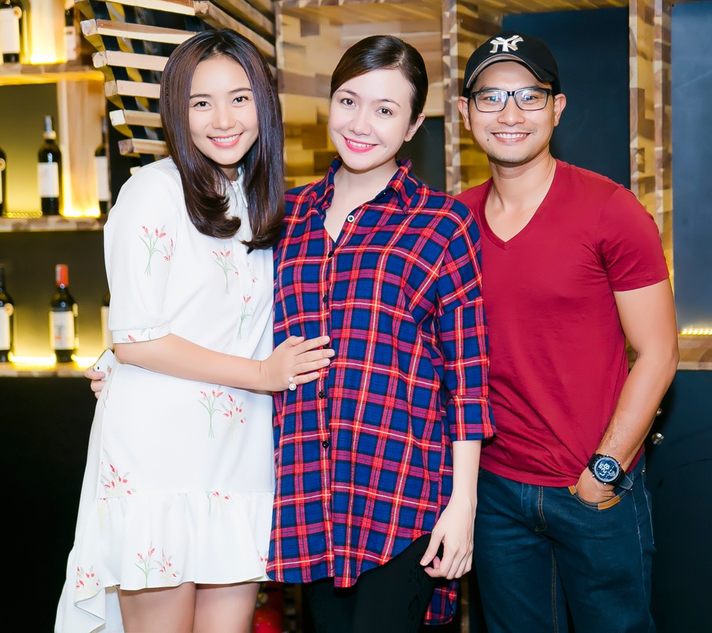 | Phan Như Thảo vui mừng khi hội ngộ vợ chồng nam diễn viên Huỳnh Đông. Cô tranh thủ hỏi han sức khỏe bà bầu Ái Châu. |