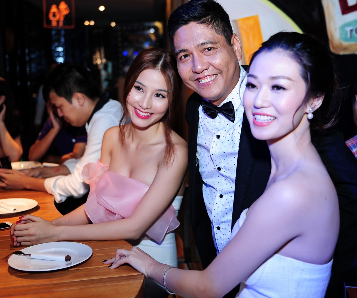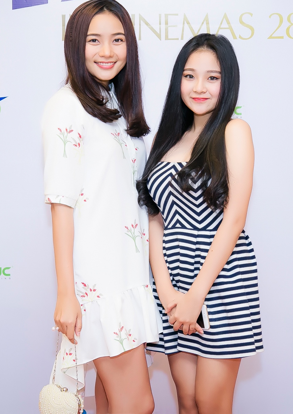 | Hai người đẹp "Song My" đến chúc mừng nam diễn viên Đức Thịnh ra mắt phim mới. |