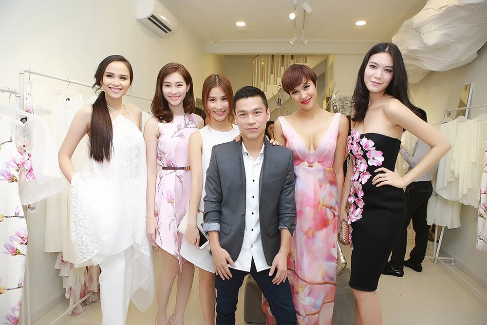| Nhà thiết kế 8X chụp ảnh bên dàn người đẹp gắn bó cùng thương hiệu của anh trong nhiều năm qua. |