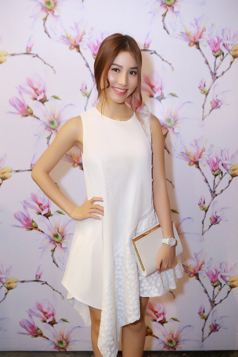 | Tham dự sự kiện của nhà thiết kế 8X, chân dài Trúc Diễm diện mẫu váy họa tiết hoa Mộc Lan hồng nổi bật trên nền vải trắng. Trang phục sắc hè lịch thiệp phát huy sở trường hình ảnh duyên dáng, ngọt ngào vốn có ở người mặc. |