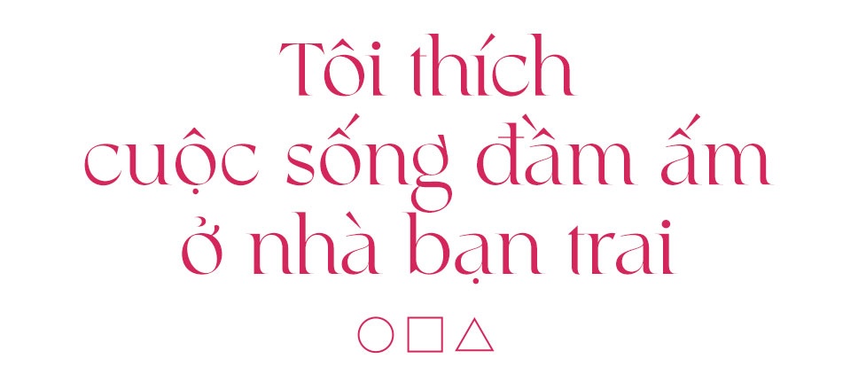 - Tôi thích sống chung với gia đình bạn trai. Từ xưa, cuộc sống của tôi luôn đơn chiếc vì lúc nào cũng chỉ có hai mẹ con. Sống bên gia đình bạn trai, có sự đủ đầy, tôi cảm thấy ấm áp. Gia đình bạn trai bao giờ cũng ăn trưa và tối cùng với nhau. Đối với người đầy đủ điều đó không quan trọng. Còn tôi rất trân trọng và hạnh phúc với thời gian quây quần bên người thân.