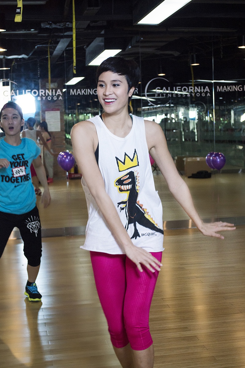 | Phương Mai cũng nhiệt tình tham gia tập luyện. |