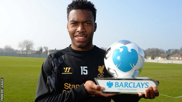 | Daniel Sturridge nhận danh hiệu cầu thủ xuất sắc nhất tháng 2 ở Ngoại hạng Anh. Ảnh: Premier League. |