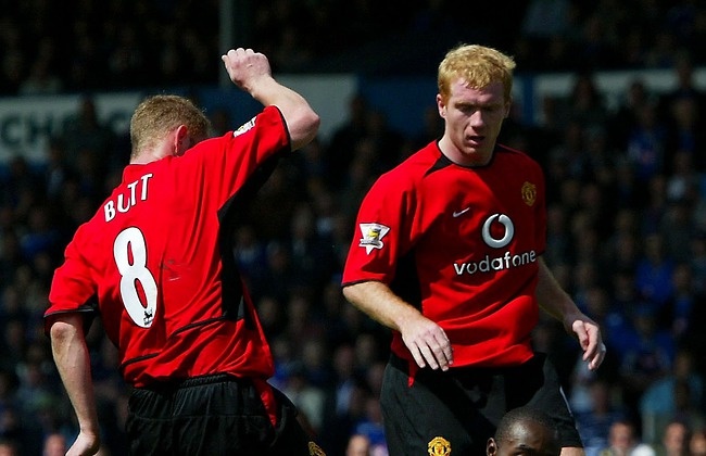 | Scholes và Butt là những cầu thủ thuộc "Thế hệ vàng" của MU. |