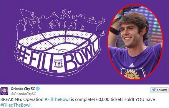 Trên Twitter chính thức của CLB, ban lãnh đạo Orlando City thông báo bán hết vé trong trận đấu với New York City vào cuối tuần này. Theo đó, 60 nghìn chỗ ngồi của Florida Citrus Bowl sẽ được phủ kín. Để đạt con số kỷ lục trên, công lớn thuộc về tiền vệ lão tướng Kaka. Giới chuyên môn đánh giá danh tiếng của cựu sao Milan và Real chẳng khác nào thỏi nam châm thu hút khán giả tới sân. Kaka hiện là cầu thủ hưởng lương cao nhất lịch sử MLS với 7,2 triệu USD mỗi năm.