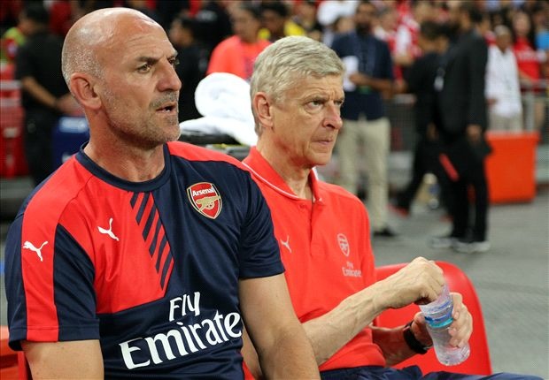 | HLV Wenger (phải) tin tưởng vào khả năng vô địch Ngoại hạng Anh của Arsenal mùa tới. Ảnh: Getty Images. |
