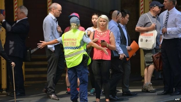 | Cảnh sát phong tỏa các tuyến phố xung quanh quán cafe Lindt và yêu cầu người dân sơ tán. Ảnh: AFP |