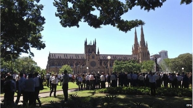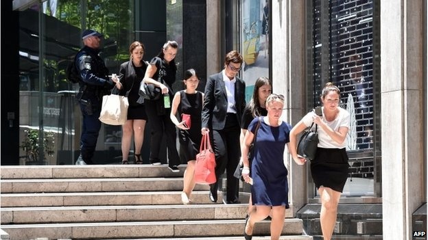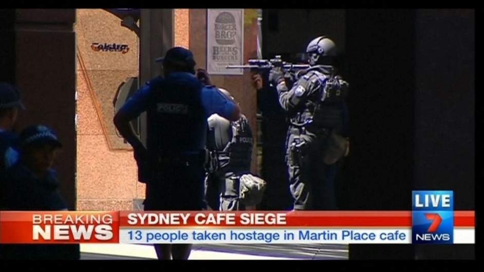 Những kẻ bắt cóc xông vào một quán cafe tại Sydney, ép các con tin cầm cờ đen trắng, làm dấy lên lo ngại về một cuộc tấn công của phiến quân Hồi giáo.