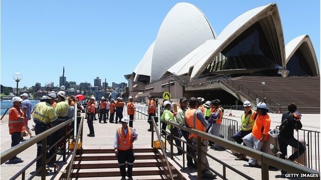 | Người dân sơ tán khỏi nhà hát Sydney Opera sau khi cảnh sát tìm thấy một gói đồ khả nghi. |