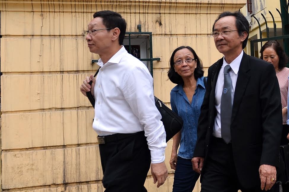 Trong số những người xuất hiện tại phiên xử sơ thẩm có bà Đặng Ngọc Lan (áo trắng, đeo kính đen). Người phụ nữ này đến tòa bằng một chiếc xe khá sang trọng.