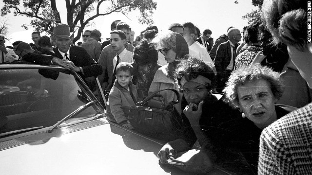 Người dân thành phố Dallas, bang Texas vẫy chào tổng thống John F. Kennedy khi ông tới thành phố vào ngày 22/11/1963. Ảnh: AP.