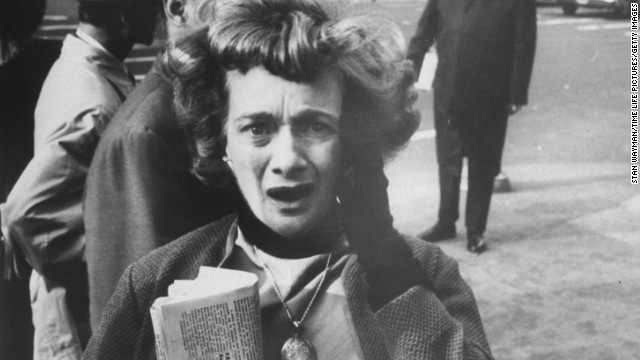 Một phụ nữ tại thanh phố New York tỏ ra bàng hoàng khi nghe tin tổng thống Kennedy qua đời. Ảnh: Getty Images.