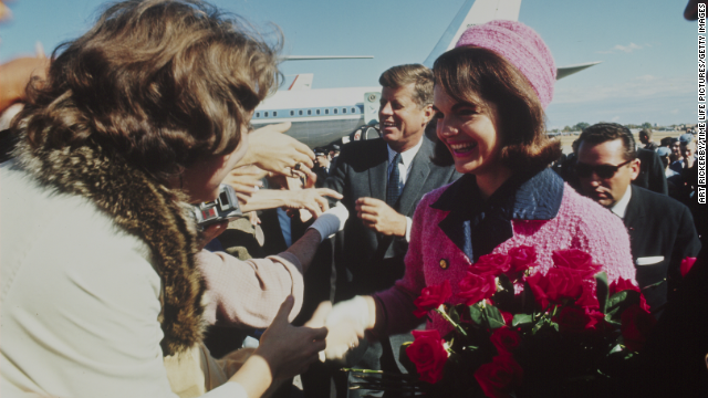 Đệ nhất phu nhân Jacqueline Kennedy cùng chồng gặp những người ủng hộ tại sân bay Love Field, thành phố Dallas. Họ tới thành phố Dallas để thúc đẩy chiến dịch vận động tranh cử tổng thống vào năm 1964. Ảnh: Getty Images.