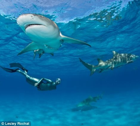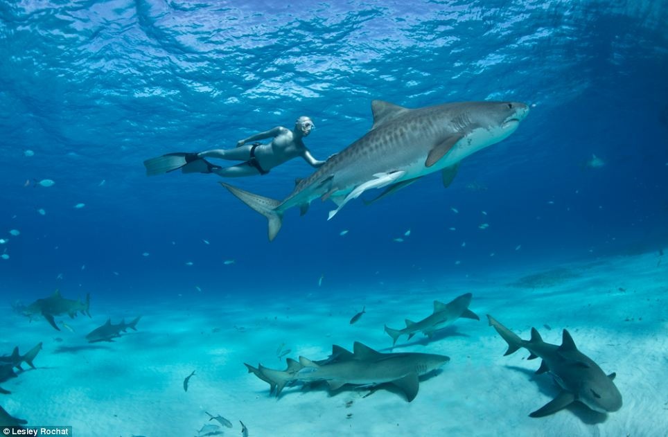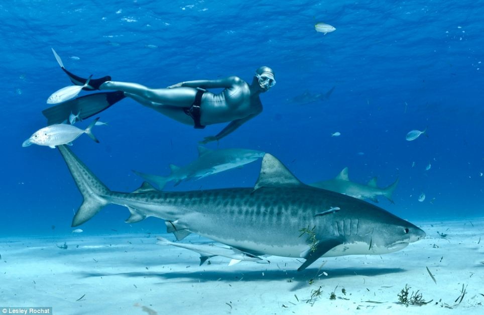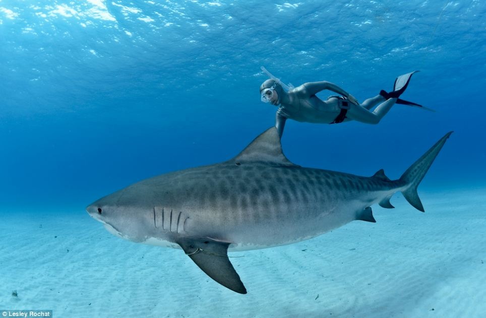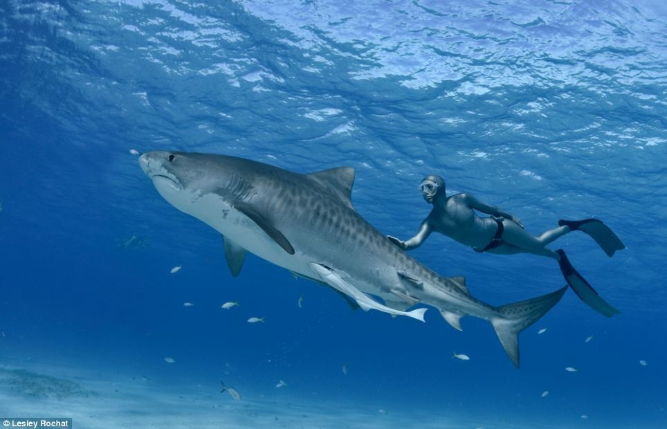 Người xem vô cùng sửng sốt khi thấy Lesley Rochat chỉ mặc duy nhất bộ bikini và bơi cùng một số cá mập hổ - được xem là một trong những loài động vật nguy hiểm nhất ở đại dương. Lesley Rochat muốn trải nghiệm cảm giác nguy hiểm nhất để chứng minh rằng, cá mập không nguy hiểm như mọi người vẫn nghĩ.